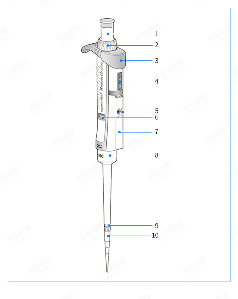 Research plus 單道可調(diào)量程移液器,不含吸頭。藍(lán)色控制按鈕