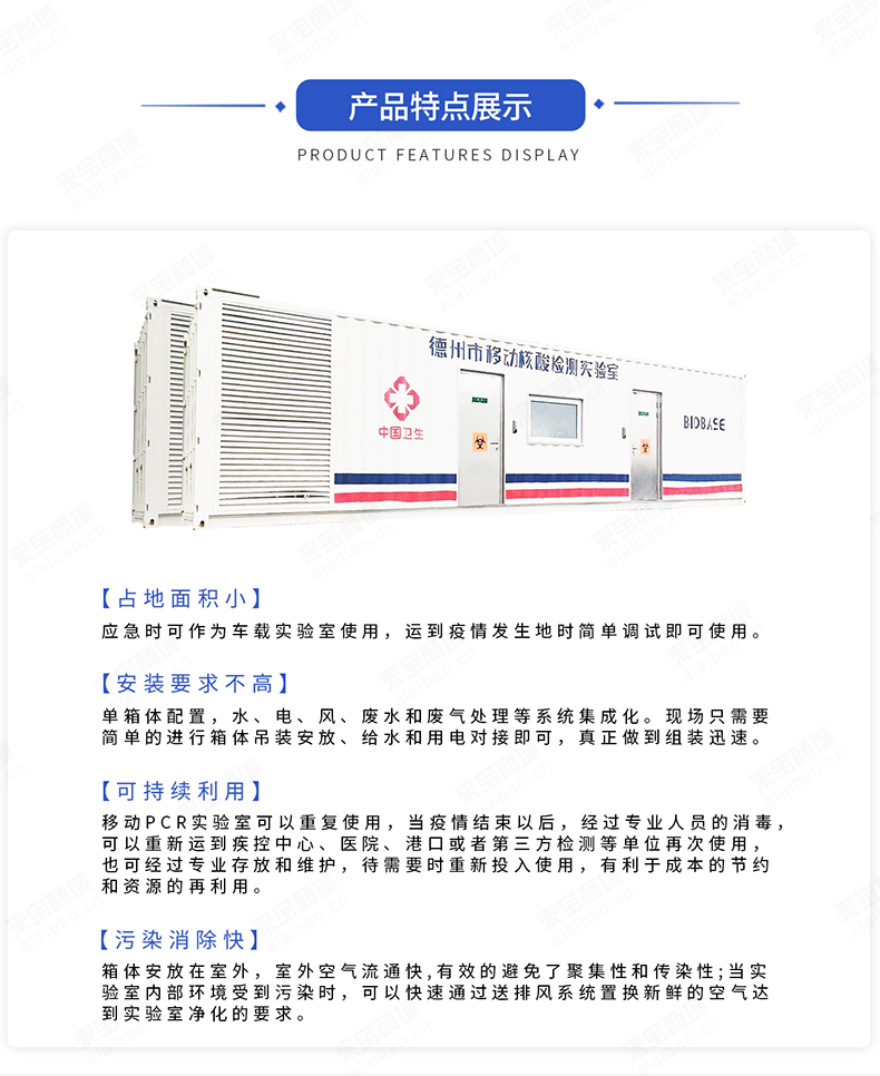 【品牌優(yōu)勢(shì)】 博科自產(chǎn)移動(dòng)PCR方艙實(shí)驗(yàn)室,當(dāng)疫情發(fā)生的時(shí)候,移動(dòng)箱式PCR實(shí)驗(yàn)室能迅速運(yùn)到疫情發(fā)生地開(kāi)展檢測(cè)工作,對(duì)疫情的控制會(huì)有比較好的效果。