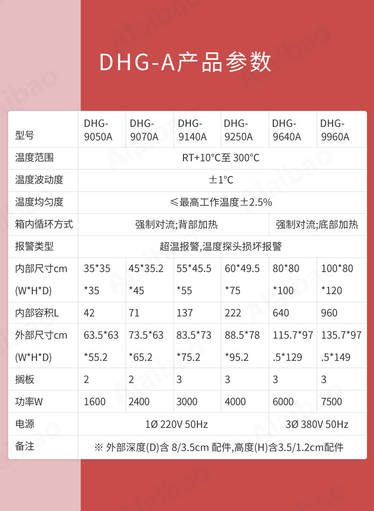 | DHG-9050A | RT+10-300 | 43 | 350*350*350 | 630*590*530 | 2 | 1600 | 46/60 | 220V50HZ |